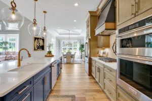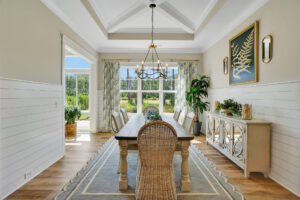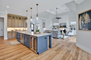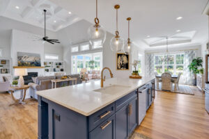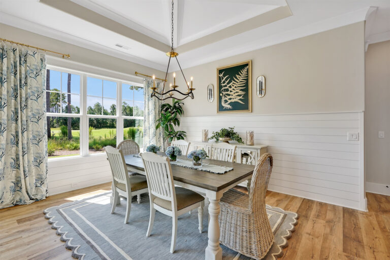 The kitchen includes a 12ft island with a dedicated eating area and a separate dining room next to the EZ Breeze room. At the other entry point, the two car garage leads to a large mud room and laundry space.
